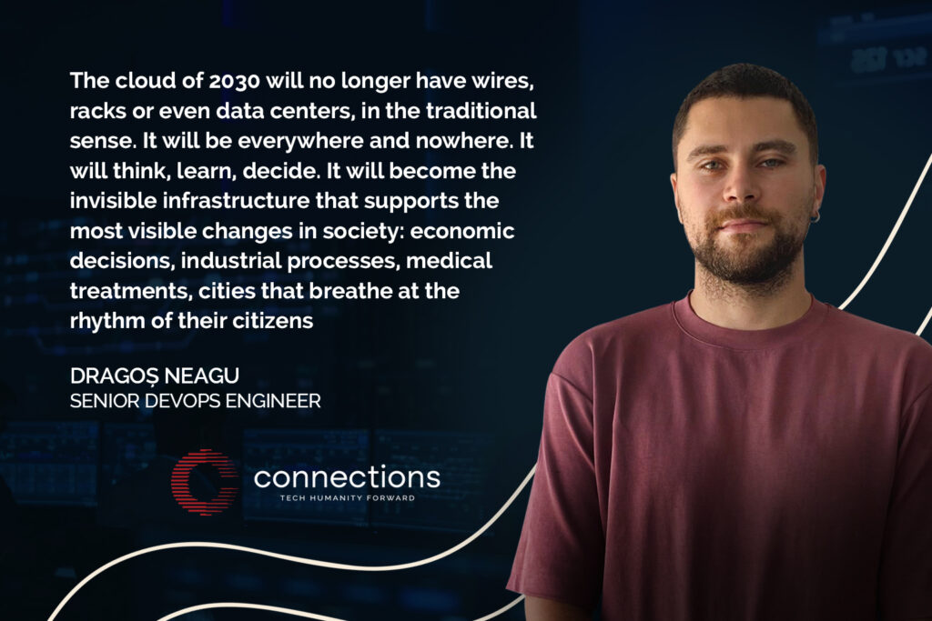 “The cloud of 2030 will no longer have wires, racks or even data centers, in the traditional sense. It will be everywhere and nowhere. It will think, learn, decide. It will become the invisible infrastructure that supports the most visible changes in society: economic decisions, industrial processes, medical treatments, cities that breathe at the rhythm of their citizens” – Dragoș Neagu, Senior DevOps Engineer