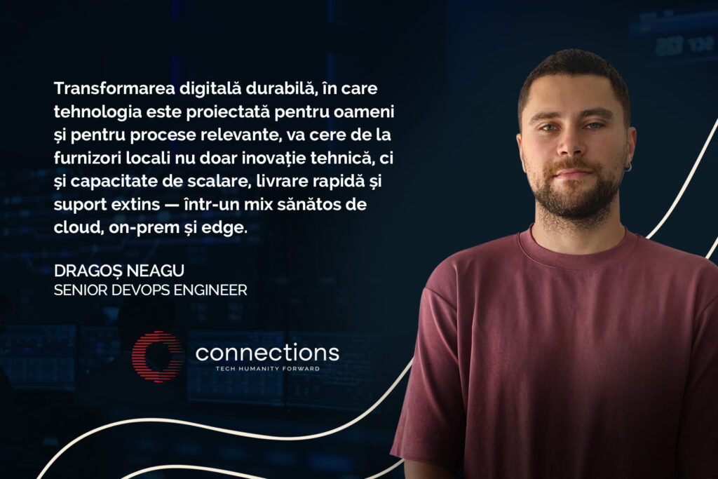 Aici, parteneriatele public-private sunt esențiale. Furnizorii de tehnologie locali vin cu know-how-ul, soluțiile și resursele umane necesare pentru a duce aceste proiecte la bun sfârșit. Investițiile realizate până acum în AI, automatizare și infrastructură software ne permit să oferim soluții scalabile și eficiente chiar și pentru cele mai complexe instituții. “Transformarea digitală durabilă, în care tehnologia este proiectată pentru oameni și pentru procese relevante, va cere de la furnizori locali nu doar inovație tehnică, ci și capacitate de scalare, livrare rapidă și suport extins — într-un mix sănătos de cloud, on-prem și edge.” ne spune Dragoș Neagu, Senior DevOps Engineer
