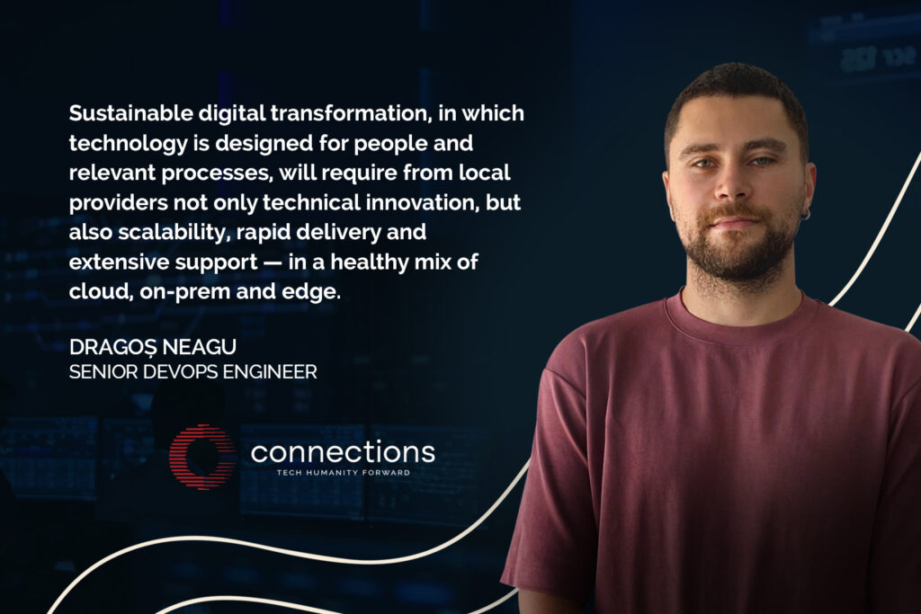 “Sustainable digital transformation, in which technology is designed for people and relevant processes, will require from local providers not only technical innovation, but also scalability, rapid delivery and extensive support — in a healthy mix of cloud, on-prem and edge.” he tells us Dragoș Neagu, Senior DevOps Engineer